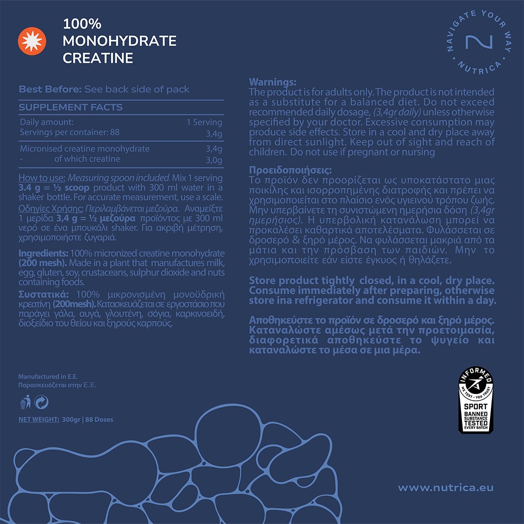 Nutrica Creatine is made from 100% pure micronized Creatine Monohydrate for optimal solubility and absorption.